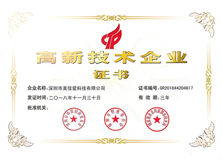 深圳市美佳愛科技有限公司是一家專注于商業(yè)顯示領域產品解決方案的高新技術企業(yè)。應對大數據時代背景下,各行業(yè)領域對于數據可視化要求的飛速增長,公司生產的LED小間距全彩顯示屏、超窄邊LCD液晶拼接屏、廣告機、觸摸一體機、矩陣切換器、工業(yè)級安防監(jiān)控、視頻會議觸摸屏、廣告?zhèn)髅筋惍a品等以其大氣極簡的現代風格,優(yōu)異的視覺呈現,便捷的操作、專業(yè)完善的售后支持迅速成為商顯領域的行業(yè)翹楚。 公司產品先后通過中國強制認證CCC,國家質量監(jiān)督檢驗中心及第三方質檢機構CNAS、CMA、ISO9001-2015質量管理體系認證、ISO14001環(huán)境管理體系認證等。使得公司的產品性能參數優(yōu)于國家標準和行業(yè)標準,為市場帶來了更高價值的優(yōu)質產品。